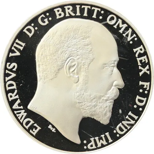 | Chữ khắc mặt trước | EDWARDVS VII D: G: BRITT: OMN: REX F: D: IND: IMP: COPY Des |
