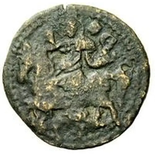 | Beschrijving voorzijde | St. George with nimbus riding on horse left, killing dragon with lance |