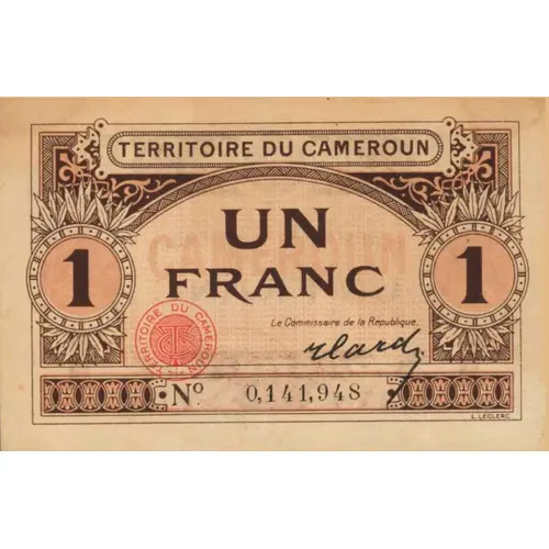 (Translation: TERITORY OF CAMEROON 1 FRANC)