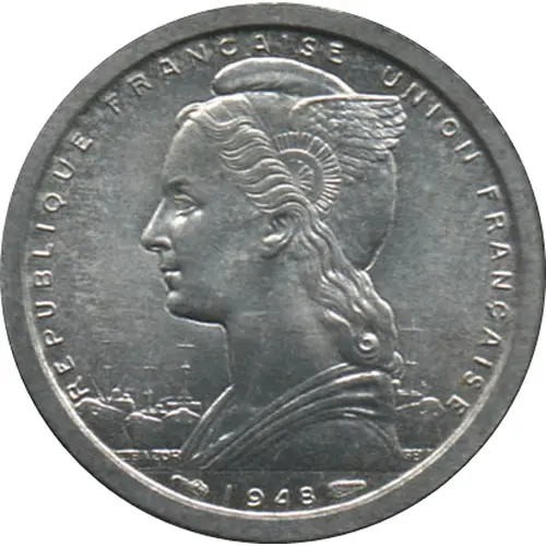 | Надписи аверса | REPUBLIQUE FRANÇAISE UNION FRANÇAISE L.BAZOR GB 1948 |