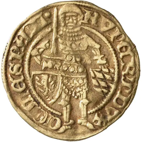 | Opis awersu | Rupert in armor holding sword, flanked by arms of Palatinate and Bavaria. |