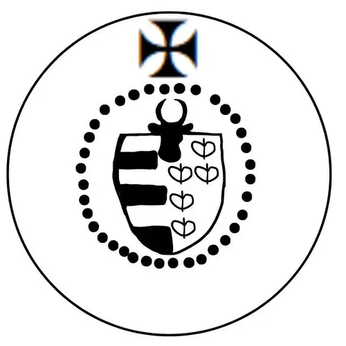 Mô tả mặt trước Coat of arms, a split shield, left three bars; right 5 lilies. Auroch`s head above. Illegible legend around.