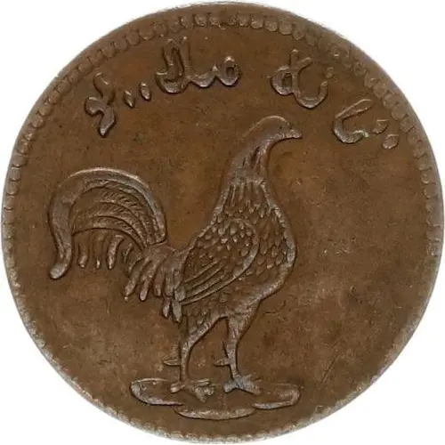 | Popis líce | A spurred cockerel facing right with Arabic inscription at top. Beads around border. |