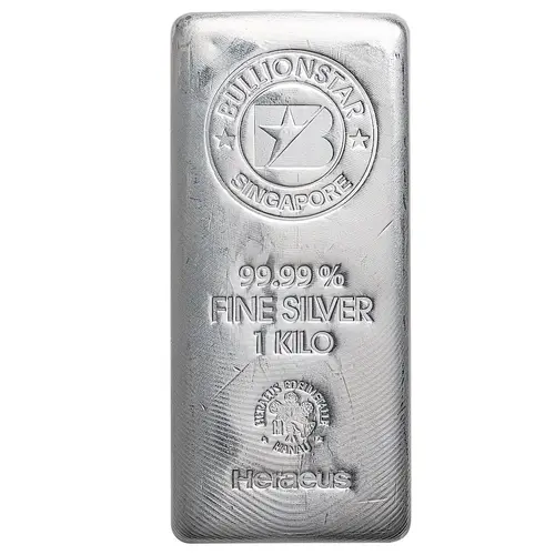 | Legenda do anverso | BULLIONSTAR SINGAPORE 99.99% FINE SILVER 1 KILO HERAEUS EDELMETALLE ● HANAU ● Heraeus |