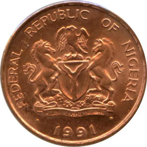 | Obverse lettering | FEDERAL REPUBLIC OF NIGERIA UNITY AND FAITH, PEACE AND PROGRESS 1991 |
