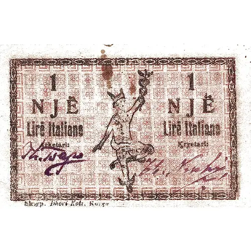 | Chữ khắc mặt trước | 1 NJË Lirë Italiane (Translation: One Italian Lire) |