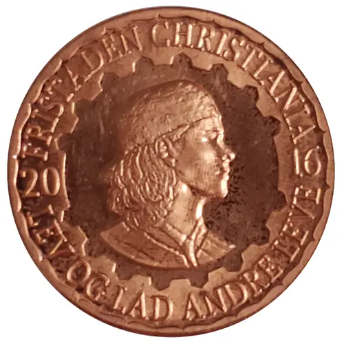 | Legenda do anverso | FRISTADEN CHRISTIANIA 20 16 LEV OG LAD ANDRE LEVE |