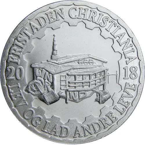 | Leyenda del anverso | FRISTADEN CHRISTIANIA 20 18 LEV OG LAD ANDRE LEVE |