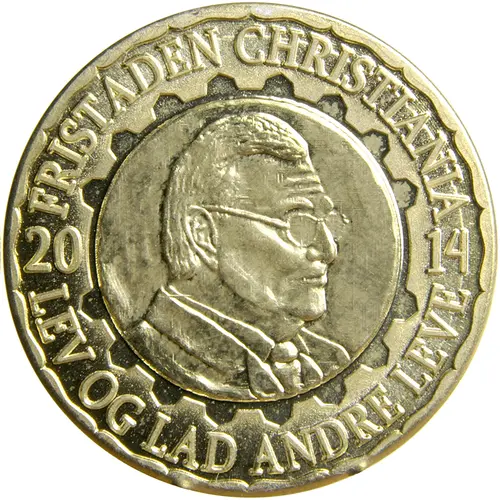| Légende de l’avers | FRISTADEN CHRISTIANIA 20 14 LEV OG LAD ANDERE LEVE (Translation: Freetown Christiania Live and let others live) |