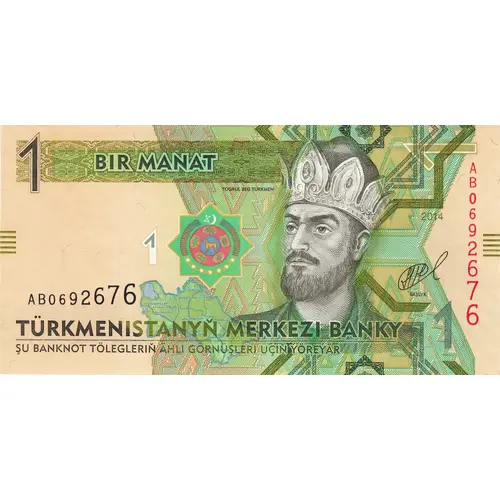 (Translation: One Manat, Central Bank of Turkmenistan, This banknote is valid for all types of payments)