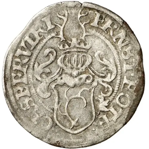 | Descrição do anverso | Shield of stag horn arms divides date. |