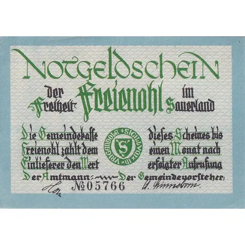 | Issuer | Municipality of Freienohl (Prussian province of Westphalia) |