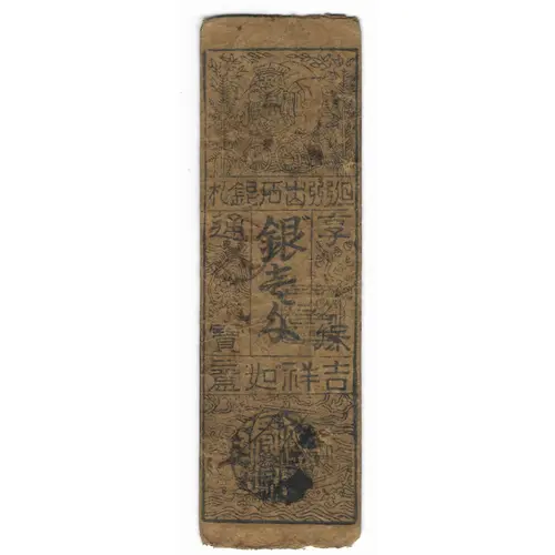 | Reverse lettering | 札銀石出州但 通 銀 享 壱 寳 匁 保 意如祥吉 (Translation: Tanshū (Tajima Province) Izushi silver note Silver one Monme Kyōhō currency Good luck as wish) |
