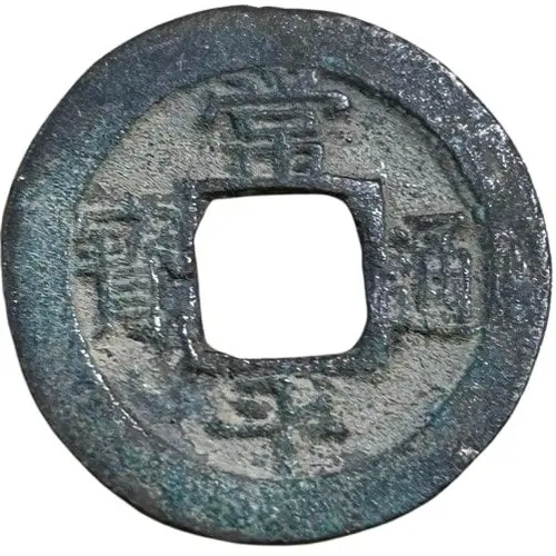 | توضیحات پشت سکه | Mint mark at top, character for `heaven` (天, chon) at bottom, and serial number at left & right. *開 (Kae): Kaesong Township Military Office |