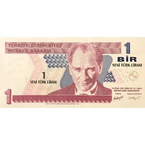 | Opschrift keerzijde | TÜRKİYE CUMHURİYET MERKEZ BANKASI BİR YENİ TÜRK LİRASI (Translation: Central Bank of the Turkish Republic, One New Turkish Lira) |