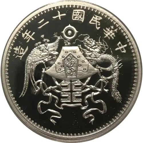| Obverse description | Depicts a Dragon and Phoenix along with the national emblem of the Twelve Symbols, as well as the inscription in Chinese characters, reading from left to right that read `Created in the 12th Year of the Republic of China.` |