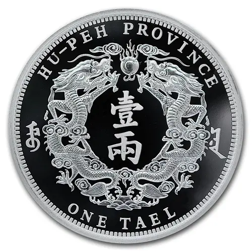 Depicts twin dragons with a fiery pearl with the words `Hu-Peh Province` at the top and the denomination `1 Tael` below |