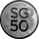 Reverse feature the SG50 logo in the center, with fireworks bursting in the background. The name of the issuing country is above and stylized with the number 5 and 0, reading (5)INGA (0)RE. The years of the anniversary is below, with the mintmark of the mint to the right. |