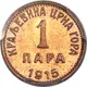 | Надписи реверса | КРАЉЕВИНА ЦРНА ГОРА 1 ПАРА 1915 (Translation: Kingdom of Montenegro 1 Para) |