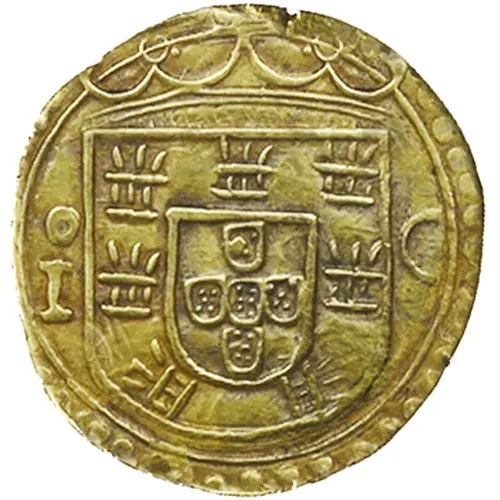 | Ön yüz açıklaması | Gomes/2013: E1.14.01 to 14.05` Coat of arms divide king`s initial (I) and mint mar (C) |