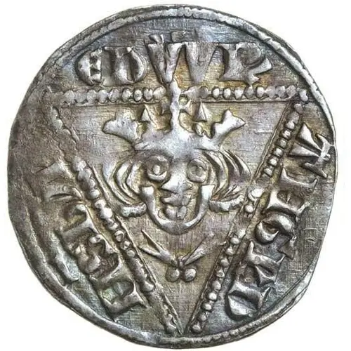 | Obverse description | Facing crowned bust with trefoil of pellets under, all within a beaded triangle. Legend in three parts |