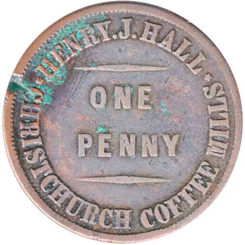 | Averslegende | HENRY. J. HALL - ONE PENNY - . CHRISTCHURCH COFFEE MILLS . |