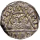 | Opis awersu | Facing bust with sceptre left, hair (left) of two neat curls and pellets, beard of pellets, crown with spurs at ends of band with pelleted fleur, enclosed within a triangle |