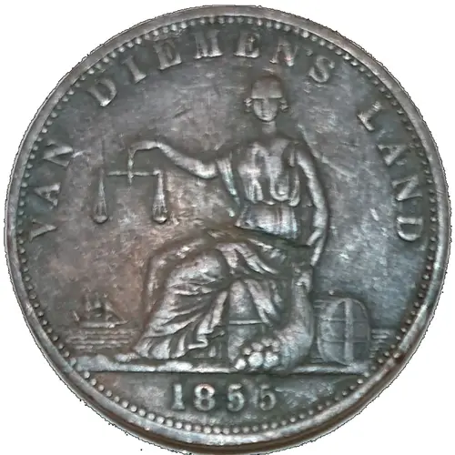| Obverse lettering | VAN DIEMEN`S LAND 1855 |