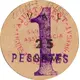 | Beschrijving keerzijde | Cream color round cardboard with black lettering and red round municipal stamp. Original cardboard coin of 25 Centimos (Turró#40) overstamped with new face value `1 PESSETES`. |