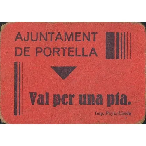 | Légende de l’avers | AJUNTAMENT DE PORTELLA Val per una pta. (Translation: City Council of Portella Valid for One Peseta) |