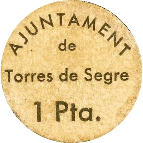 | Légende de l’avers | AJUNTAMENT de Torres de Segre 1 Pta. (Translation: Ciy Council of Torres de Segre 1 Peseta) |