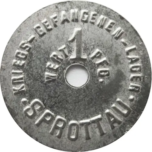 | Legenda awersu | KRIEGS-GEFANGENEN-LAGER WERT 1 PFG. ● SPROTTAU ● |