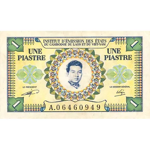 INSTITUT D`ÉMISSION DES ÉTATS DU CAMBODGE DU LAOS ET DU VIET-NAM UNE PIASTRE |