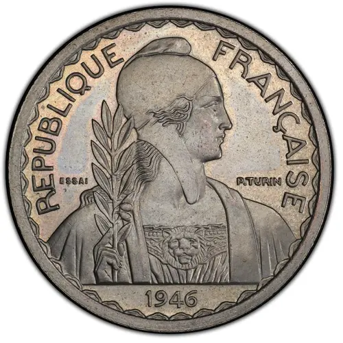 | Надписи аверса | REPUBLIQUE FRANÇAISE ESSAI P.TURIN 1946 (Translation: French Republic Trial P. Turin) |