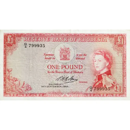 RESERVE BANK OF RHODESIA I promise to pay the bearer on demand ONE POUND For the Reserve Bank of Rhodesia |