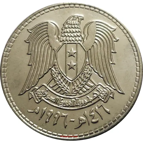 | Legenda del dritto | الجمهورية العربية السورية ١٤١٦هـ - ١٩٩٦م (Translation: Syrian Arab Republic AD1996 - AH1416) |