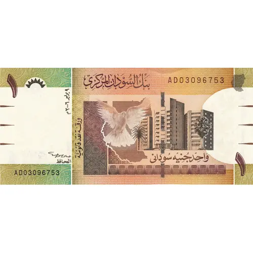 | Obverse description | Brown and Yellow on Multicolour Underprint. Bank of Sudan building, Khartoum. |