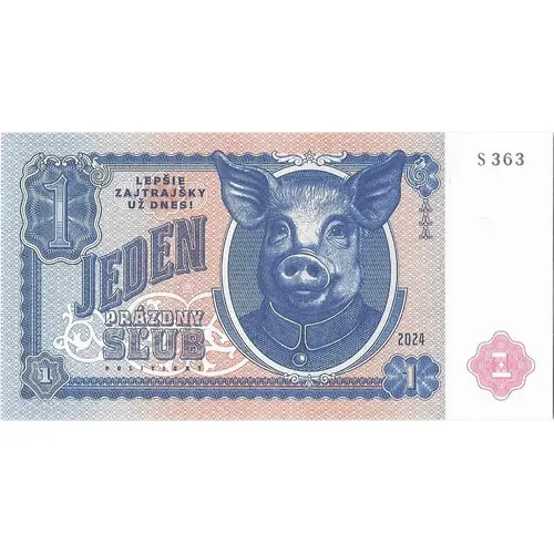 | Obverse lettering | 1 LEPŠIE ZAJTRAJŠKY UZ DNES ! JEDEN PRÁZDNÝ SL`UB POLITICKÝ 1 2024 1 S363 (Translation: One Empty Promise. Tomorrow will be better than today.) |