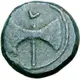 | Reverse description | Double-headed axe head (bipennis) with handle and with letter above. |