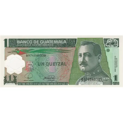 | Надписи оборотной стороны | BANCO DE GUATEMALA UN QUETZAL ARA DE TIKAL PLACA DE LEYDEN EDIFICIO DEL BANCO DE GUATEMALA (Translation: BANK OF GUATEMALA A QUETZAL ARA OF TIKAL LEYDEN PLATE BANK OF GUATEMALA BUILDING) |