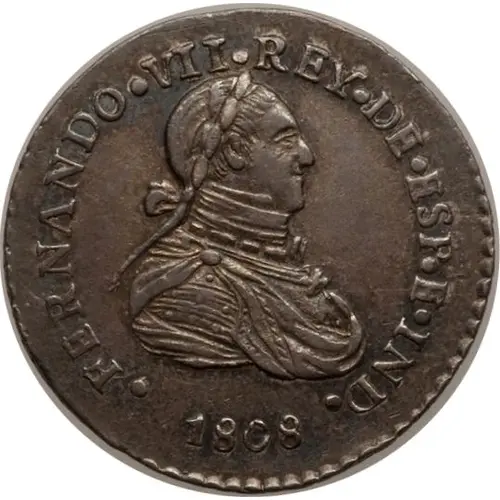 | 正面铭文 | · FERNANDO · VII · REY · DE · HSP · IND · 1808 |