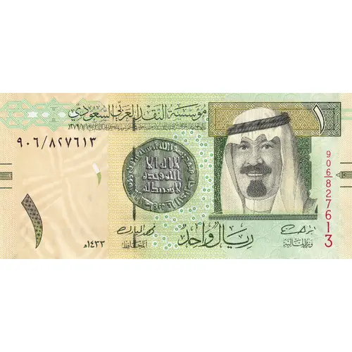 King Abdullah bin Abdul Aziz al-Saud with the center featuring the obverse of the first Islamic coin, in whose center was inscribed `لا اله إلا الله وحده لا شريك له` which means that there is no god but Allah alone, without partner or associate, and at the margin `محمد رسول الله أرسله بالهدى و دين الحق ليظهره على الدين كله `Which means that Muhammad is the messenger of Allah, he sent him with the guidance and the Religion of Truth, so that he can prevail over all religion |