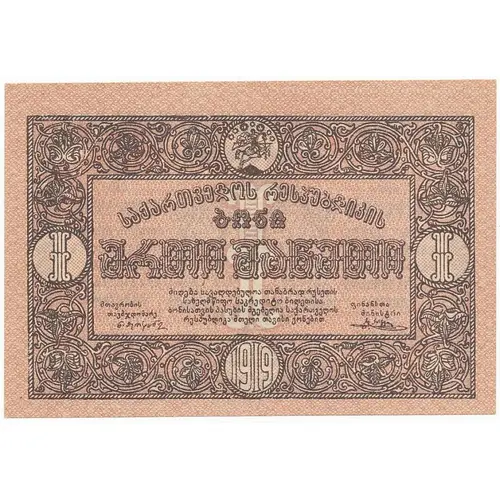 | 表面の説明 | Ornate frame with Coats of Arms of Democratic Republic of Georgia at the top, Denomination centre, date at bottom |