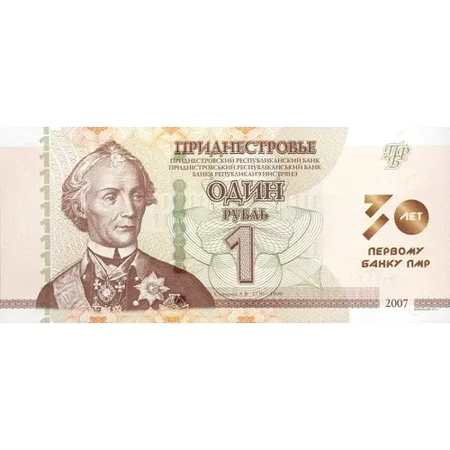 | Obverse lettering | ПРИДНЕСТРОВЬЕ ПРИДНЕСТРОВСКИЙ РЕСПУБЛИКАНСКИЙ БАНК ПРИДНІСТРОВСЬКИЙ РЕСПУБЛІКАНСКИЙ БАНК БАНКА РЕПУБЛИКАНЭ НИСТРЯНЭ ОДИН РУБЛЬ 1 30 ПЕРВОМУ БАНКУ ПМР (Translation: Transnistria, Transnistrian Republican Bank, One Ruble) |
