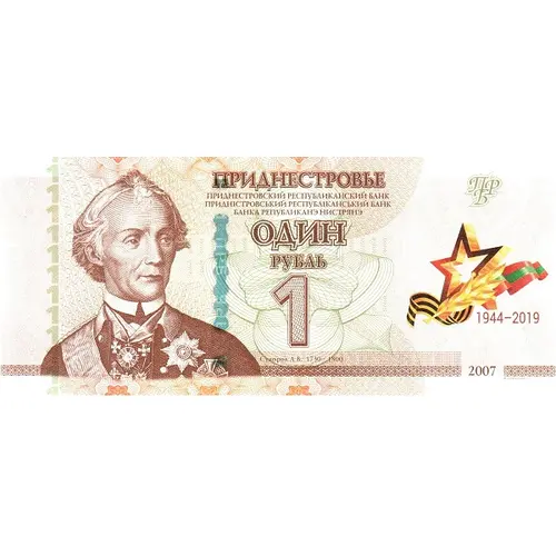 | Ön yüz lejandı | ПРИДНЕСТРОВЬЕ ПРИДНЕСТРОВСКИЙ РЕСПУБЛИКАНСКИЙ БАНК ПРИДНІСТРОВСЬКИЙ РЕСПУБЛІКАНСКИЙ БАНК БАНКА РЕПУБЛИКАНЭ НИСТРЯНЭ ОДИН РУБЛЬ 1 1944-2019 (Translation: Transnistria, Transnistrian Republican Bank, One Ruble) |