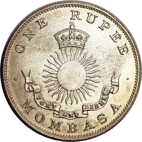 | Ön yüz lejandı | ONE RUPEE LIGHT AND LIBERTY · MOMBASA · |