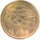 Mount Everest in the middle Above Nepal written in Devengari Belowe Mount Everest, the Nepali name of Mount Everest written with Latin letters. Belowe that `Nepal` is written. Year in the Vikram Samvat calender in the bottom. |