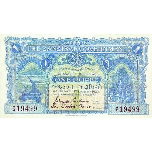 | Légende de l’avers | 1 THE ZANZIBAR GOVERNMENT ۱ ૧ PROMISES TO PAY THE BEARER ON DEMAND THE SUM OF ONE RUPEE روبية ١ ૧ રૂપિયા ZANZIBAR FOR THE GOVERNMENT OF ZANZIBAR (Translation: 1 1 One rupee one rupee) |