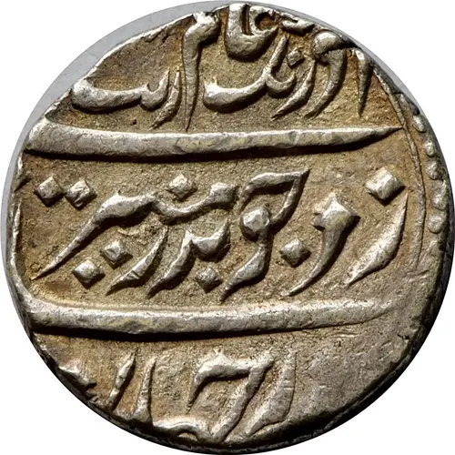 Aversbeschreibung Legend in Persian: `Sikka zad dar jahan chau muhr munir, Shah Aurangzeb Alamgir`, all within a beaded border