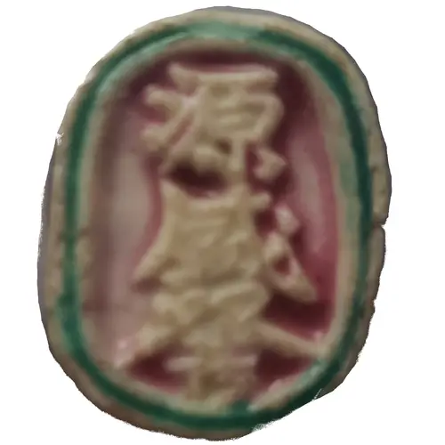 | Reverse description | Denomination written in stylized character `Song` for Song Pai in blue written above large green crab, glazed. |